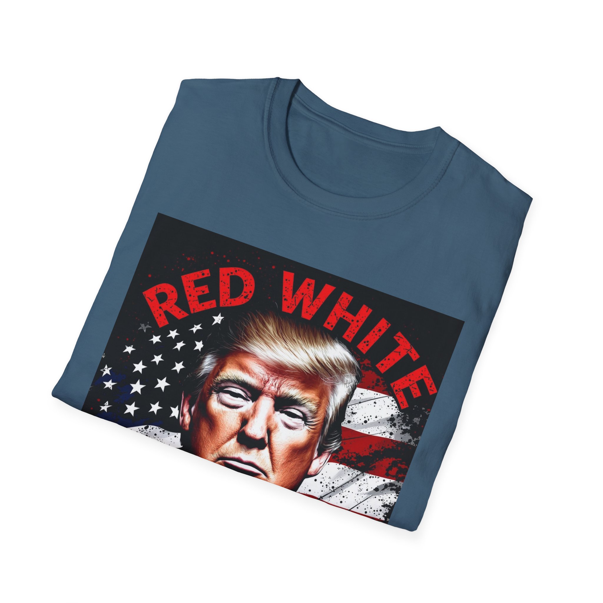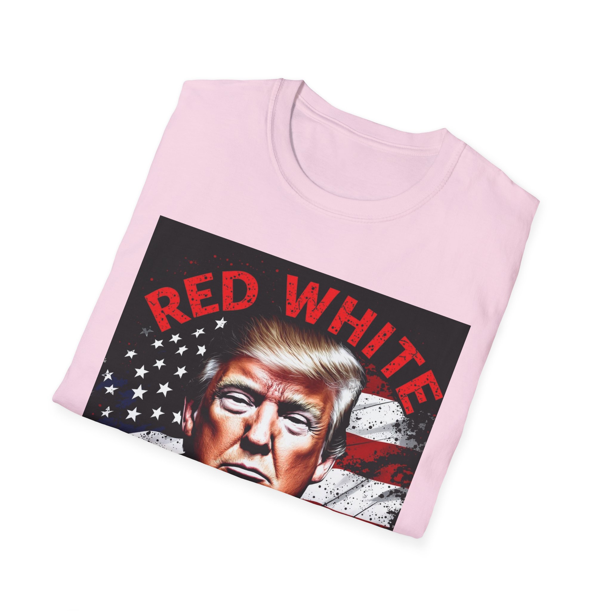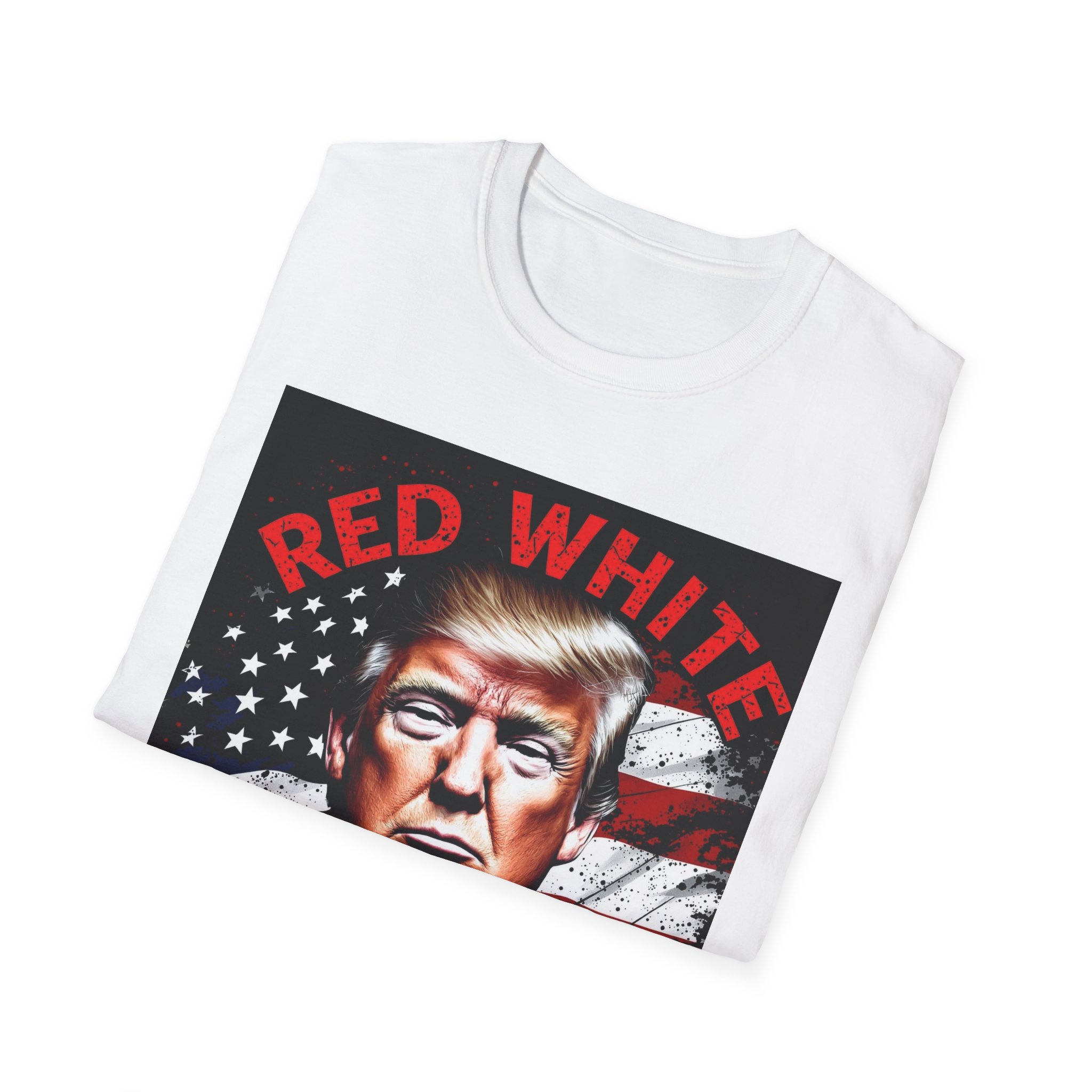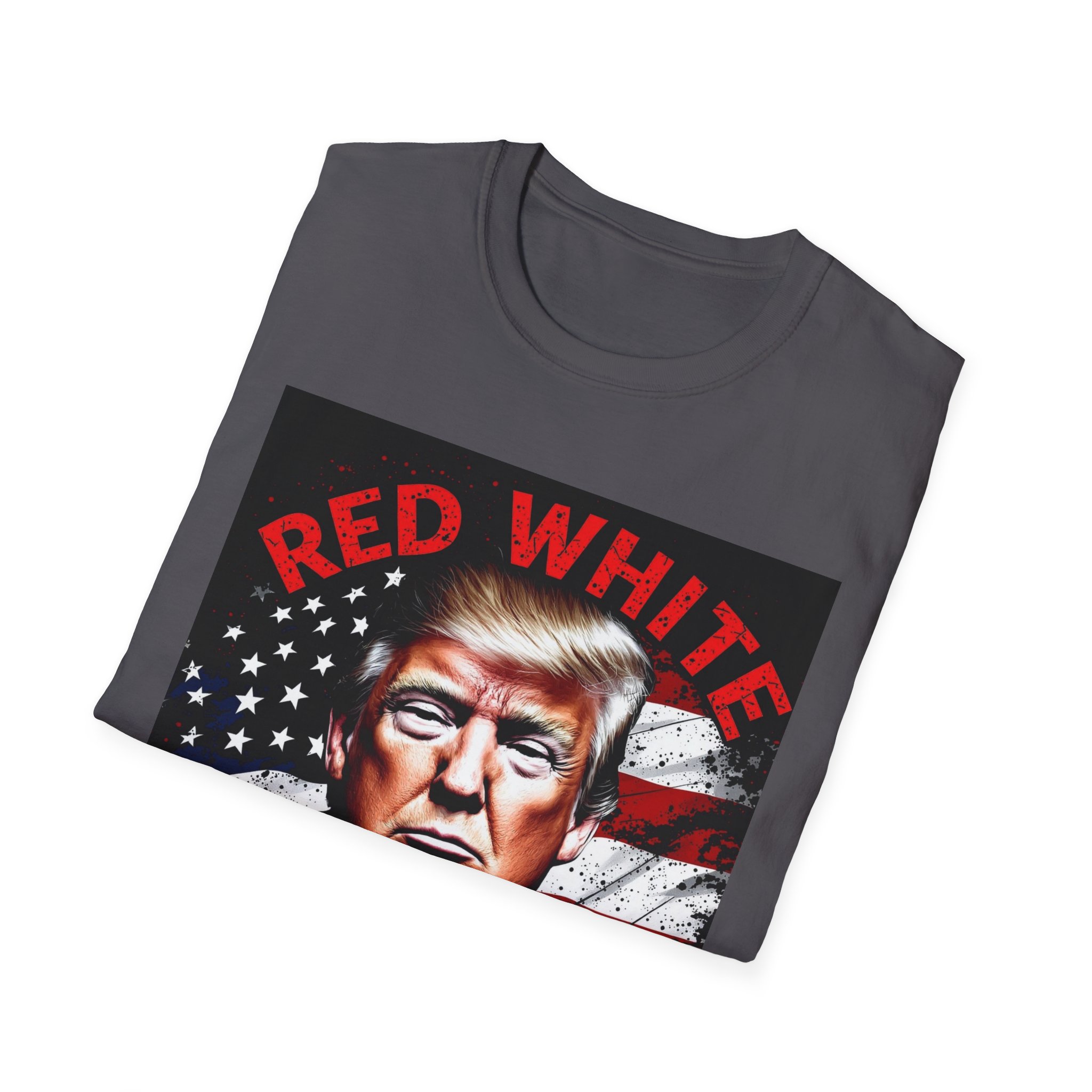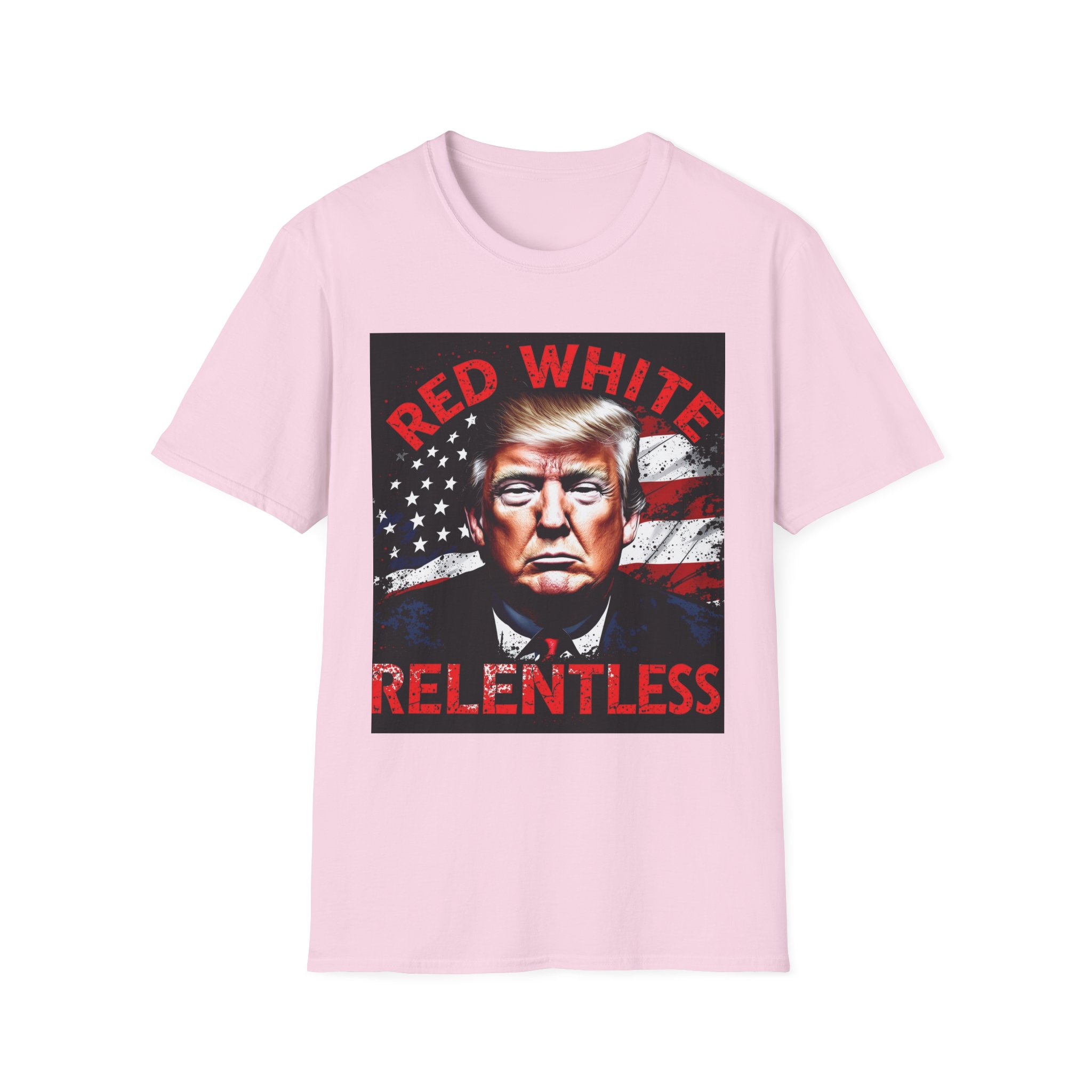 This lightweight crew-neck tee carries a bold, patriotic graphic that speaks to someone who favors outspoken, high-contrast style. The image uses a strong portrait set against a distressed flag background and punchy red text, giving the shirt a vintage-poster energy that reads confident and unapologetic. Wear it layered under a jacket for rallies or to casual meetups where you want your look to do the talking. The soft, breathable cotton keeps the feel easy all day while the classic fit keeps the silhouette familiar and wearable.